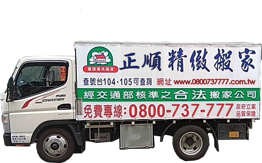 正順精緻搬家公司為政府立案之專業搬家公司,秉持顧客至上、服務品質保證的正派經營理念,積十數年搬家工作經驗,在全國各地區享有搬家公司業界的最佳口碑。新北搬家-台北市搬家公司-『免費估價』+『契約保證』。搬家找正順。我們秉持著專業搬家的態度~正順搬家是北部最多人推薦的優質的搬家公司,在台北市搬家的品質領域讓您歡喜滿意。學生搬家需要搬家的紙箱嗎?公司搬遷需要搬運公司幫忙?家裡的廢棄物需要人力幫忙處理?請找搬家最多人推薦的正順精緻搬家公司